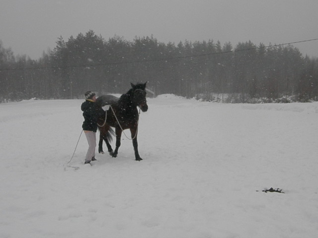 Juoksutettiin Elliä tänään,mutta oli kamala keli,ja kentän pohjakin oli aika kamala,samoten Elli oli kamala.:D Piti vaan tapella koko ajan ja siitä ei oikein tullut mitään mutta,kun tuli yksi hyvä pitkä,sillein että minä hiljensin,lopetettiin.